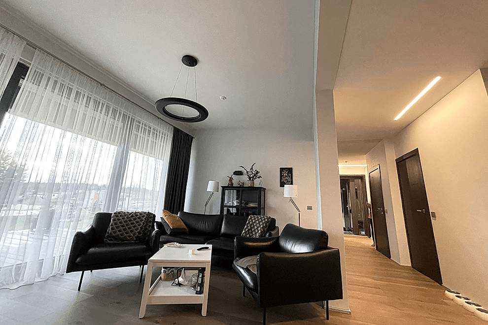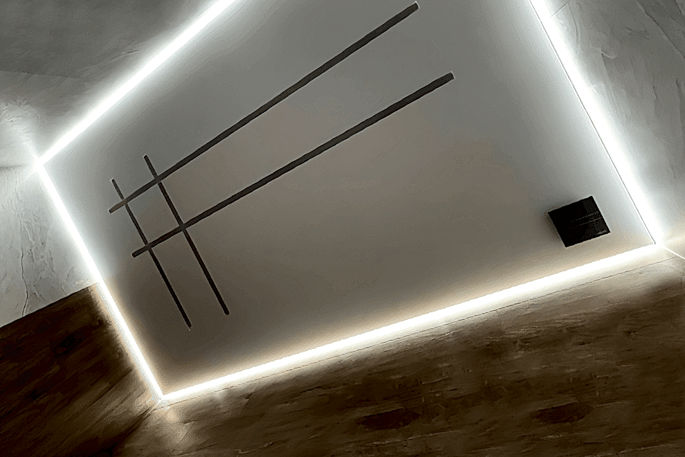 The number and shapes of lines can vary, depending on your preferences and the room’s design. For smaller spaces, 1-2 LED lines may be sufficient, while in larger rooms, lighting strips can define distinct areas – a work zone and a leisure area.