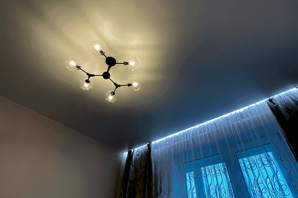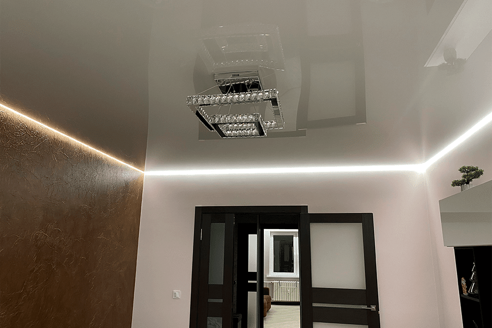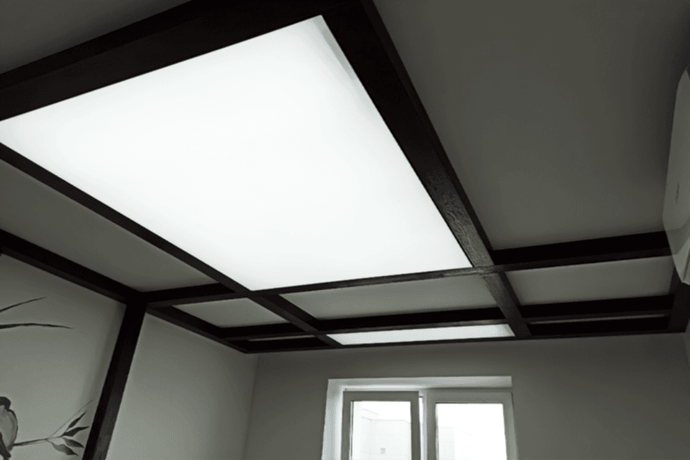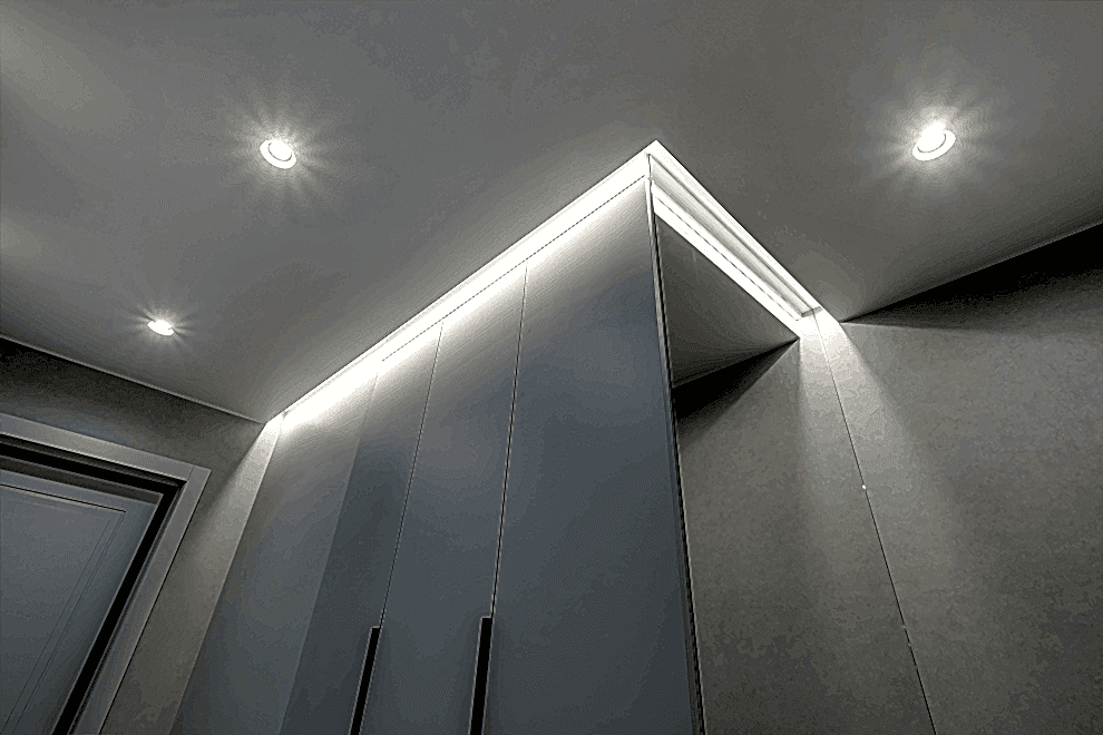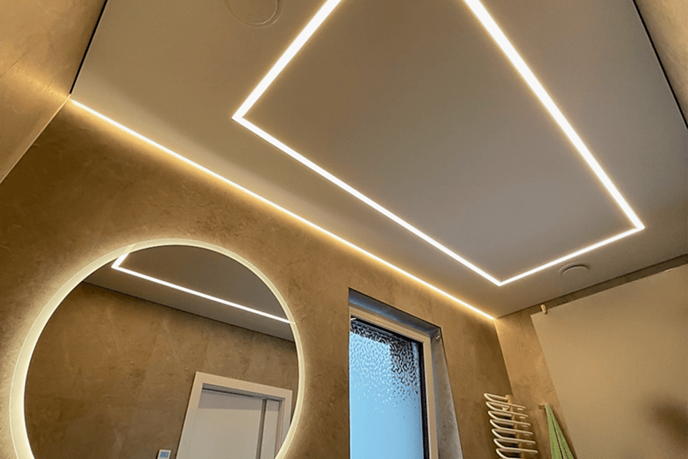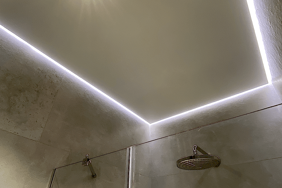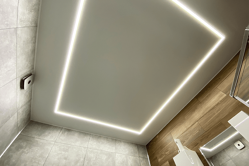 LED strips represent a type of ceiling construction where the LED tape is embedded into a special profile, covered with a light-transmitting cover, allowing the light to diffuse across the ceiling.