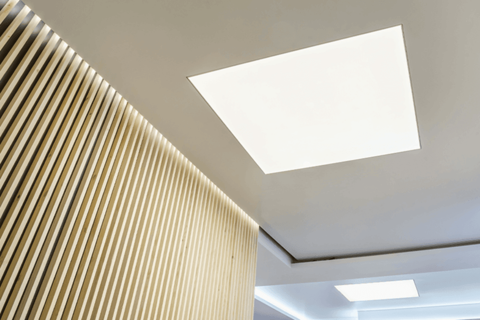 A light ceiling is a structure comprised of a special frame, translucent fabric, and LED lighting. The illumination is embedded within the framework, making the entire structure or just a part of it a source of light. The unique visual effect is achieved through the extraordinary combination of light, diverse textures, colours, and the shape of the illuminated area.