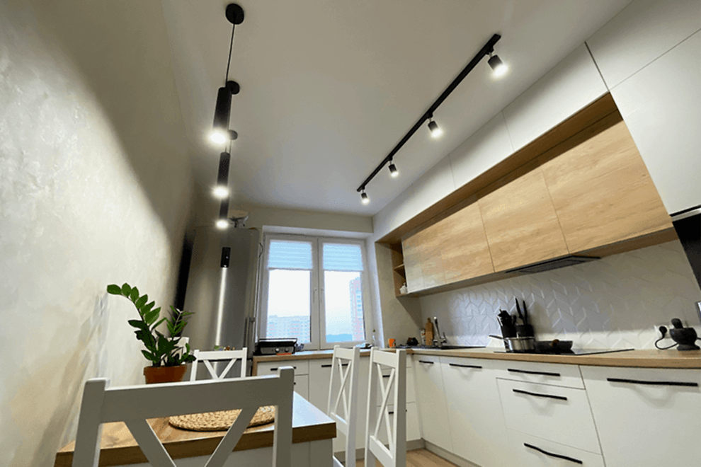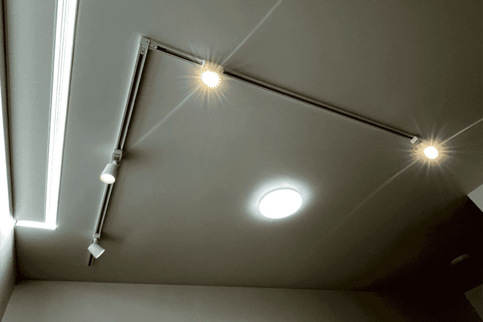 Track lighting offers a wide selection of shapes, colours, and styles. It emits uniformly high-quality light without adding extra noise, making it crucial for both work and relaxation environments.