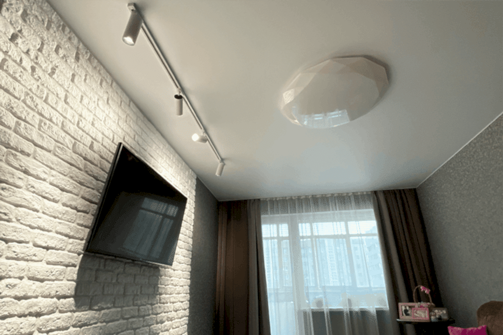 The question arises – which types of ceiling materials pair well with surface-mounted light fixtures? The answer is – more often than not, clients opt for matte, satin, or fabric ceilings. Surface-mounted light fixtures tend to blend harmoniously with these types of materials.