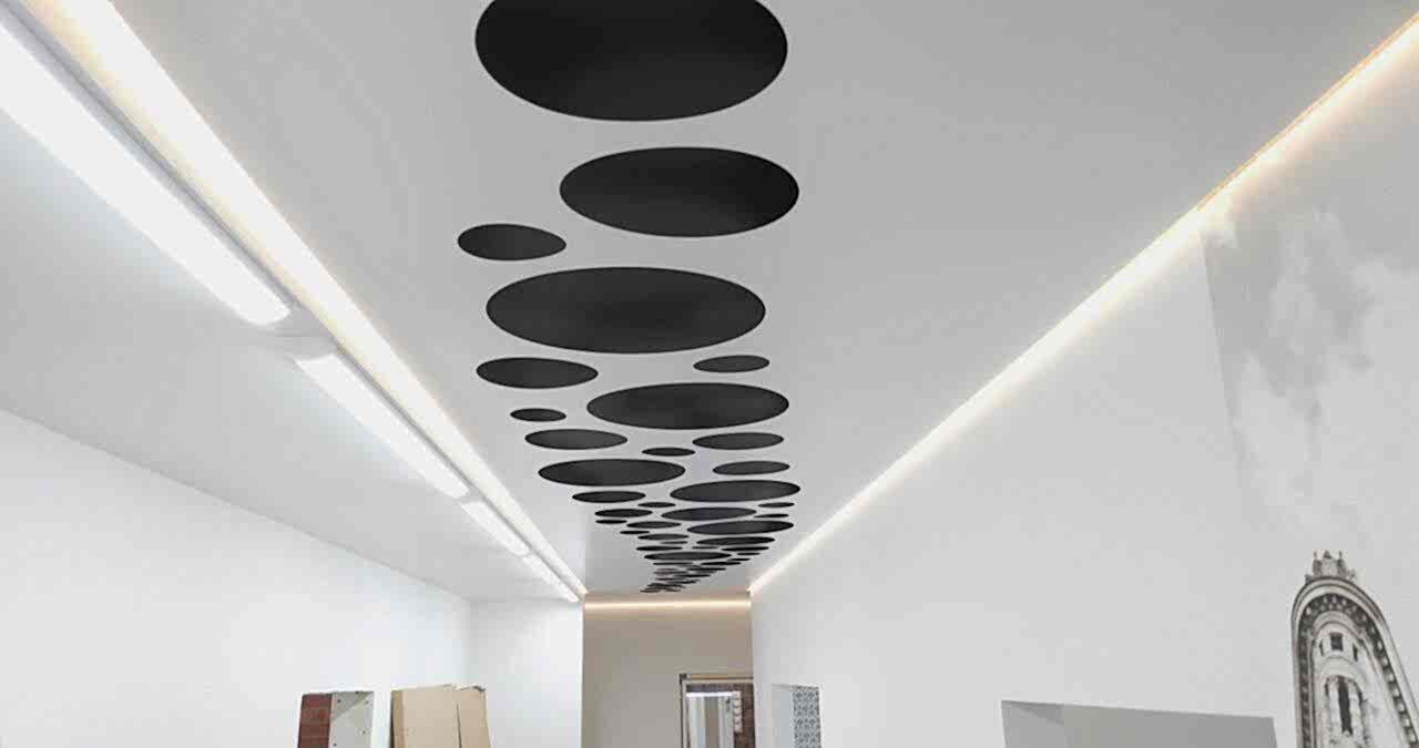 The main benefit of Perforated stretch ceilings is the variety of colours, with around 120 shades. A lacquered ceiling will reflect the interior of a room like a mirror, making it look bigger and taller. Classic style lovers will like a Perforated or Perforated -textured ceiling that mimics a traditional white ceiling with a perfectly smooth surface. Suede, marble, leather or wood textured ceilings will add a touch of luxury to your home or office. Perforated stretch ceilings can also be installed quickly and easily in any room. A stretch ceiling system consists of just two components – the ceiling fabric and the fixing profile – that can be installed in one day. It adapts to the constant natural movement of the building.