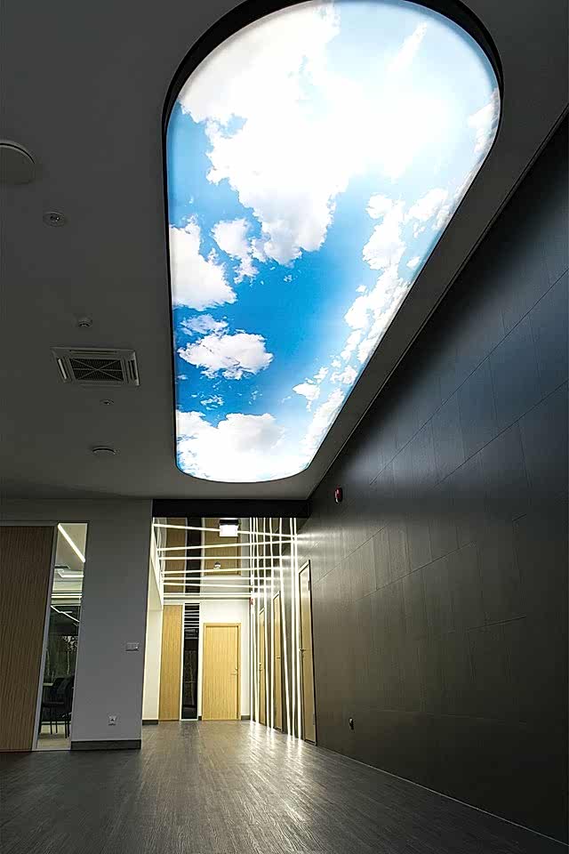 The main benefit of Photo print stretch ceilings is the variety of colours, with around 120 shades. A lacquered ceiling will reflect the interior of a room like a mirror, making it look bigger and taller. Classic style lovers will like a Photo print or Photo print -textured ceiling that mimics a traditional white ceiling with a perfectly smooth surface. Suede, marble, leather or wood textured ceilings will add a touch of luxury to your home or office. Photo print stretch ceilings can also be installed quickly and easily in any room. A stretch ceiling system consists of just two components – the ceiling fabric and the fixing profile – that can be installed in one day. It adapts to the constant natural movement of the building.