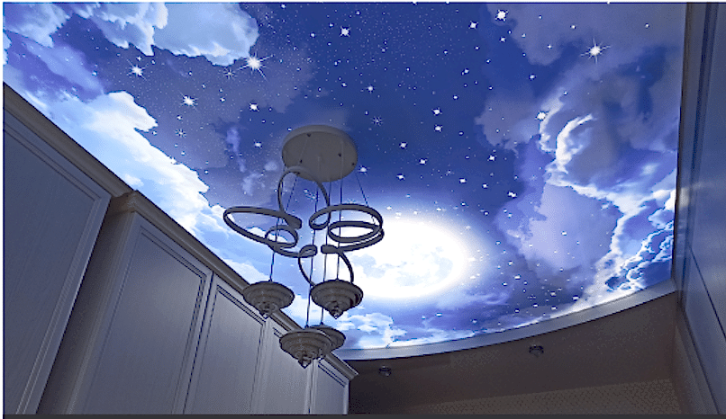 Our clients’ stretch ceiling is made from UV photo printing on a translucent canvas. The vivid and sharp print transforms the room, creating an atmosphere of coziness and tranquility, inducing a sense of sleep.